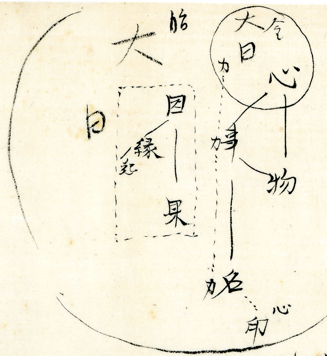 It depicts a world where multiple realms—Matter, Mind, Language, Spirit, and the Divine—overlap without boundaries. Kumagusu called these the “Five Mysteries.” It is a symbol of “Space”—a web where cause and effect are woven together in the present moment.