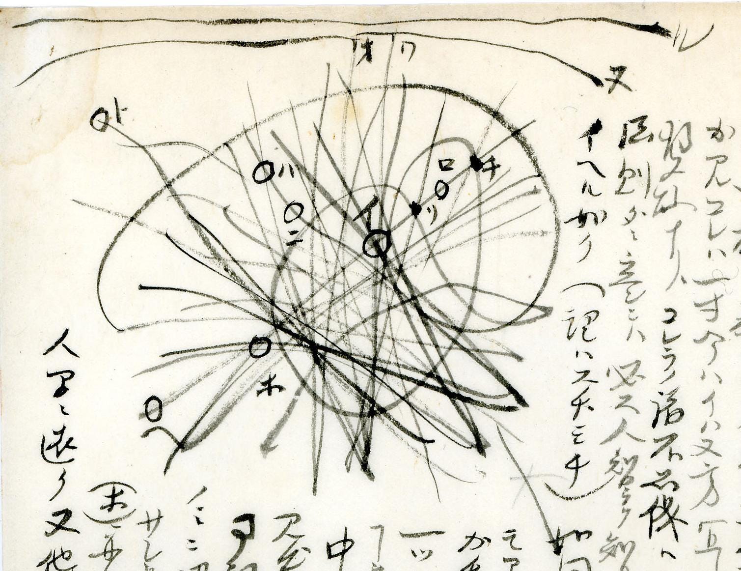 Now, look at this diagram. Countless lines crisscrossing, circles overlapping with no beginning and no end. This is the “Minakata Mandala” drawn by the Japanese polymath Minakata Kumagusu.