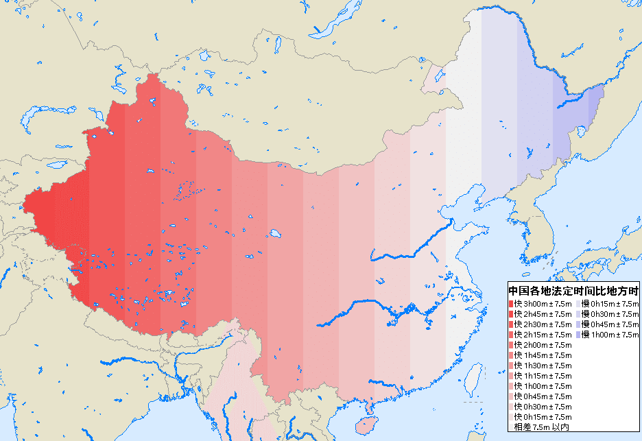 China is wide from east to west and originally spans five geographical time zones.However, to maintain national unity, it adopts a single standard time (Beijing Time, UTC+8). As a result, in the western Xinjiang Uygur Autonomous Region, a large gap occurs between the official time and the movement of the sun.